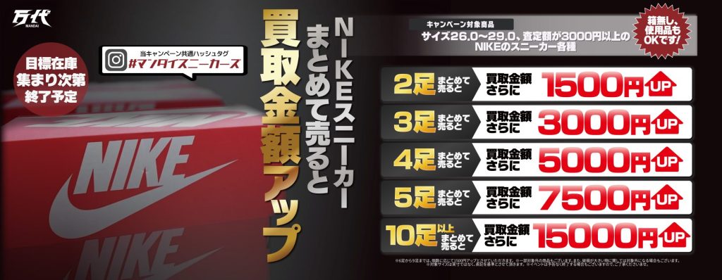 また、今ならNIKEスニーカーをまとめて売ると買取金額がアップします!