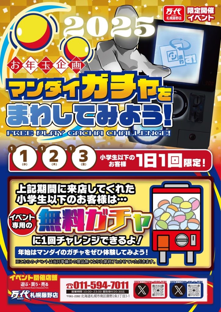 他アミューズメントコーナーも人気景品多数! 色々な種類のガチャガチャも大人気稼働中です! 2025年もぜひ万代札幌藤野店でお楽しみください!!