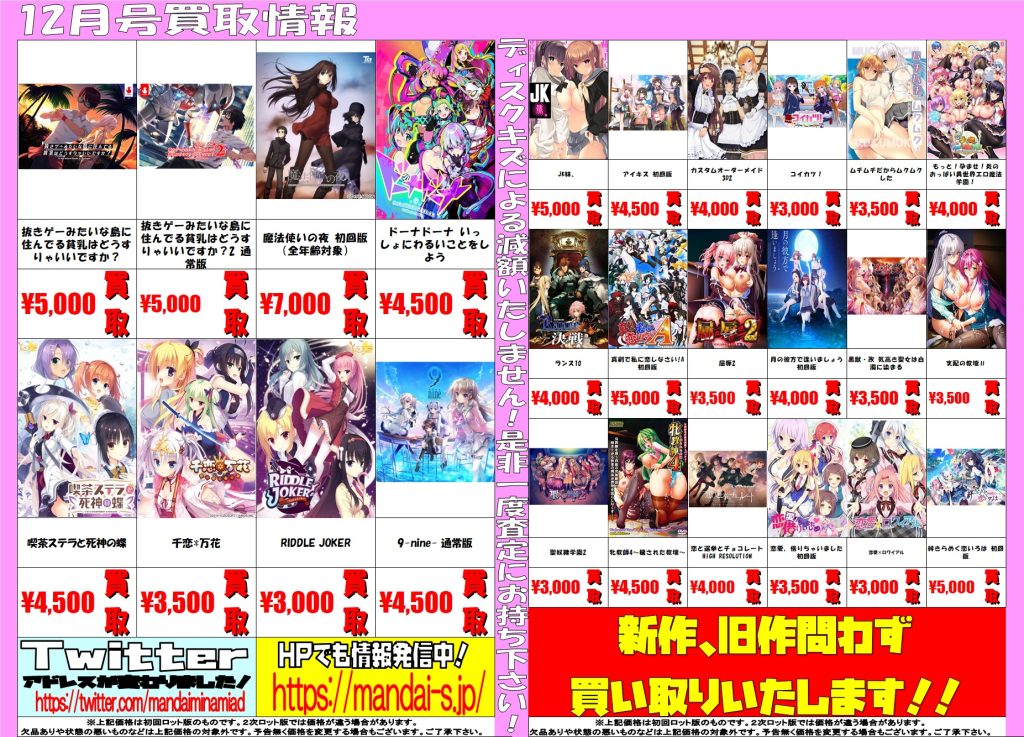 萌え〈アダルト〉只今の12月新作美少女PCゲーム買取告知です!!
