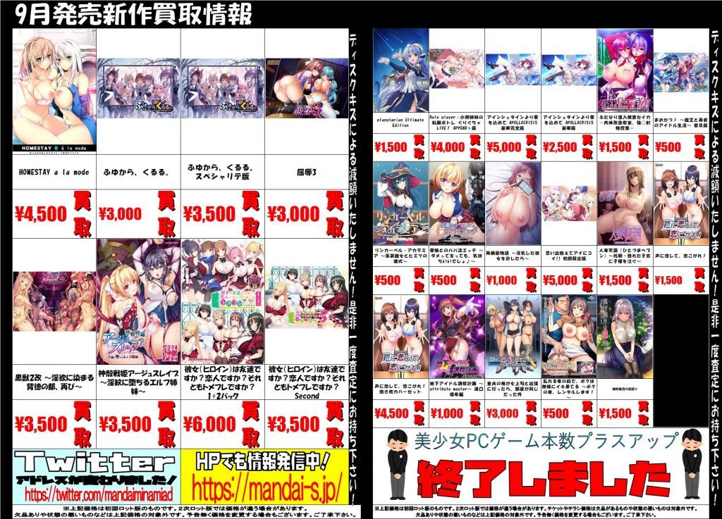 萌え〈アダルト〉10/6 新作美少女PCゲーム買取情報です!