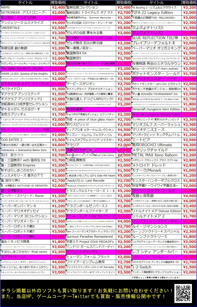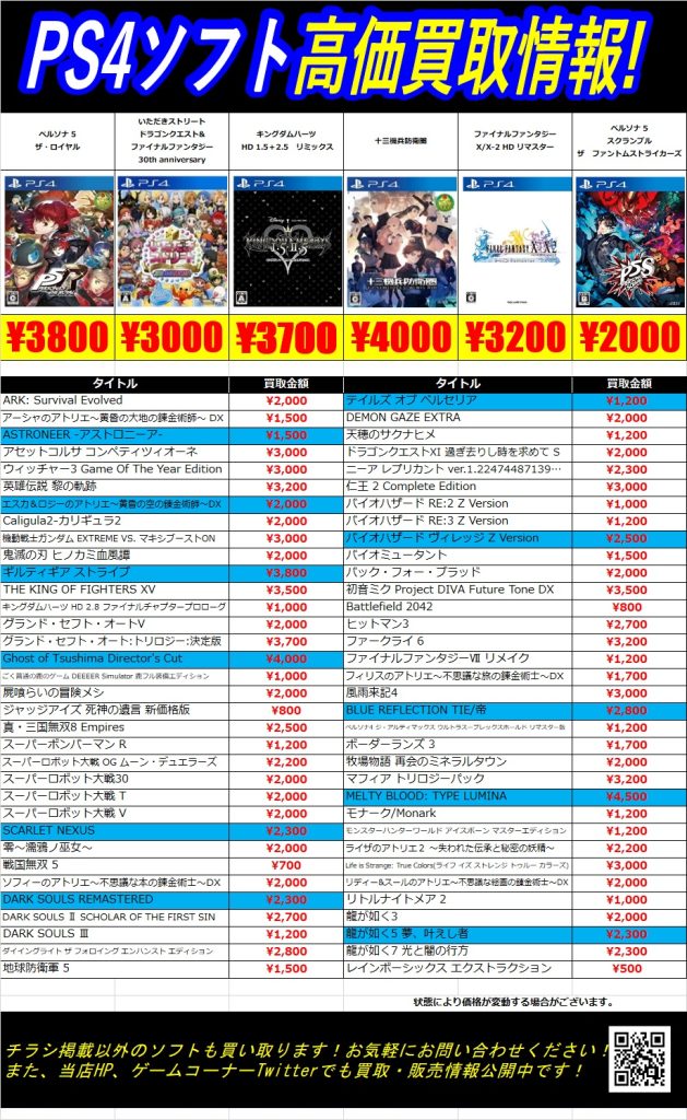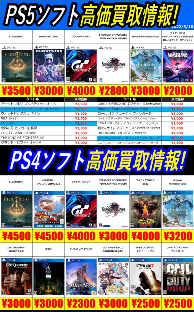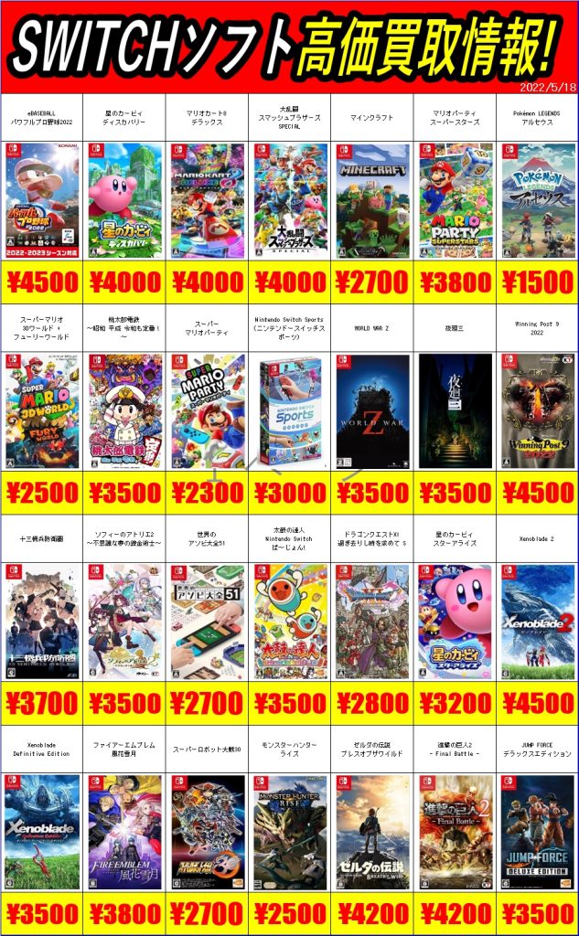 本日更新、ゲームソフト買取情報!! ぜひ買取にお持ちください!!