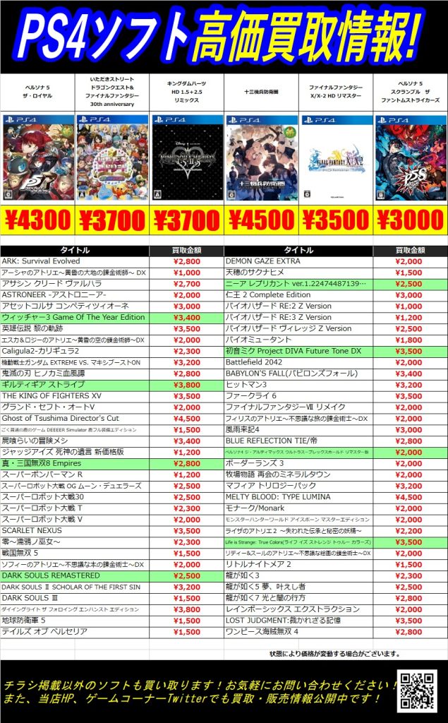 買取情報ゲーム11/24更新 スイッチ&PS4&PS5買取情報