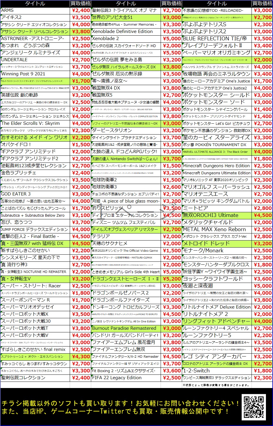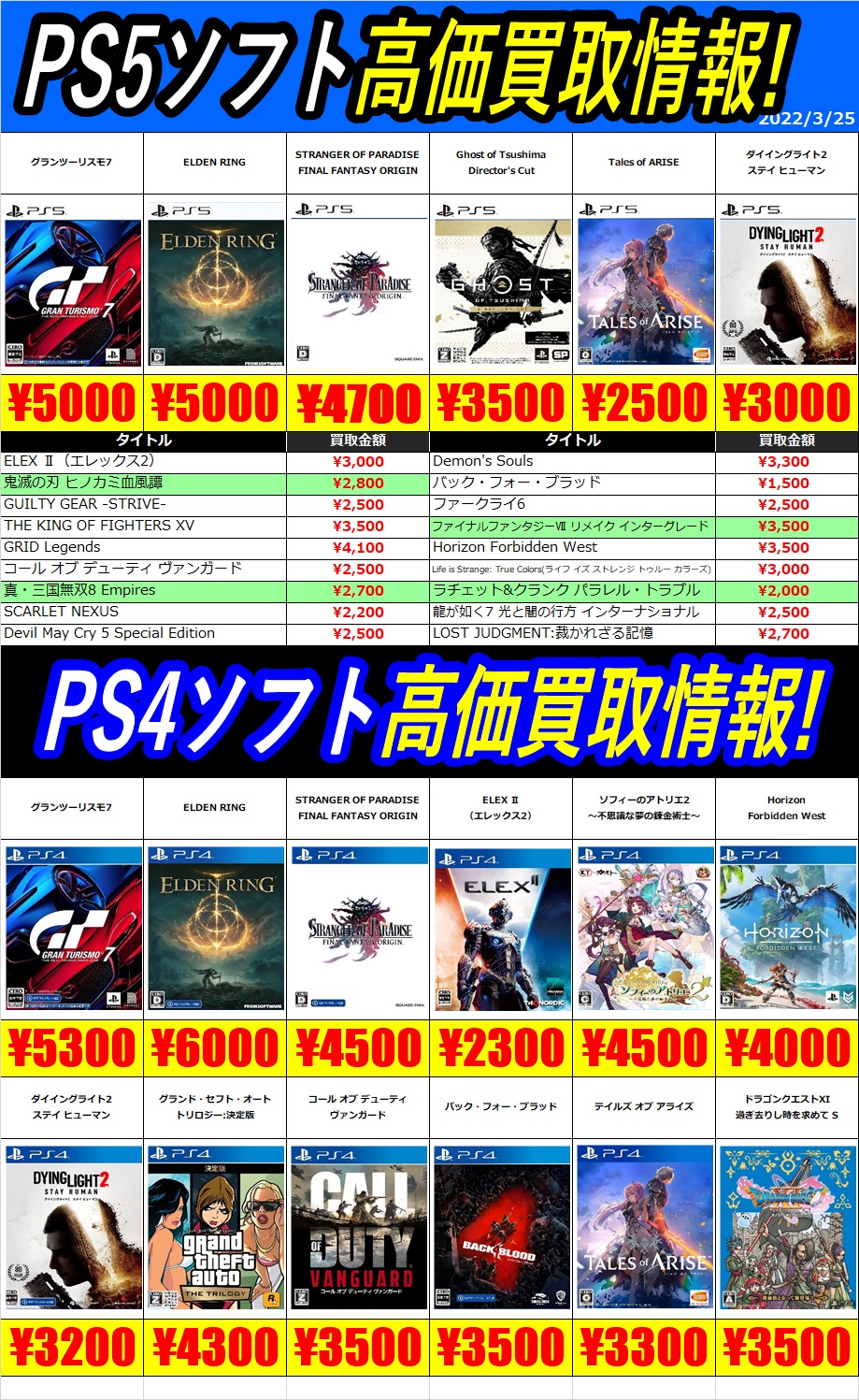 買取情報ゲーム11/24更新 スイッチ&PS4&PS5買取情報