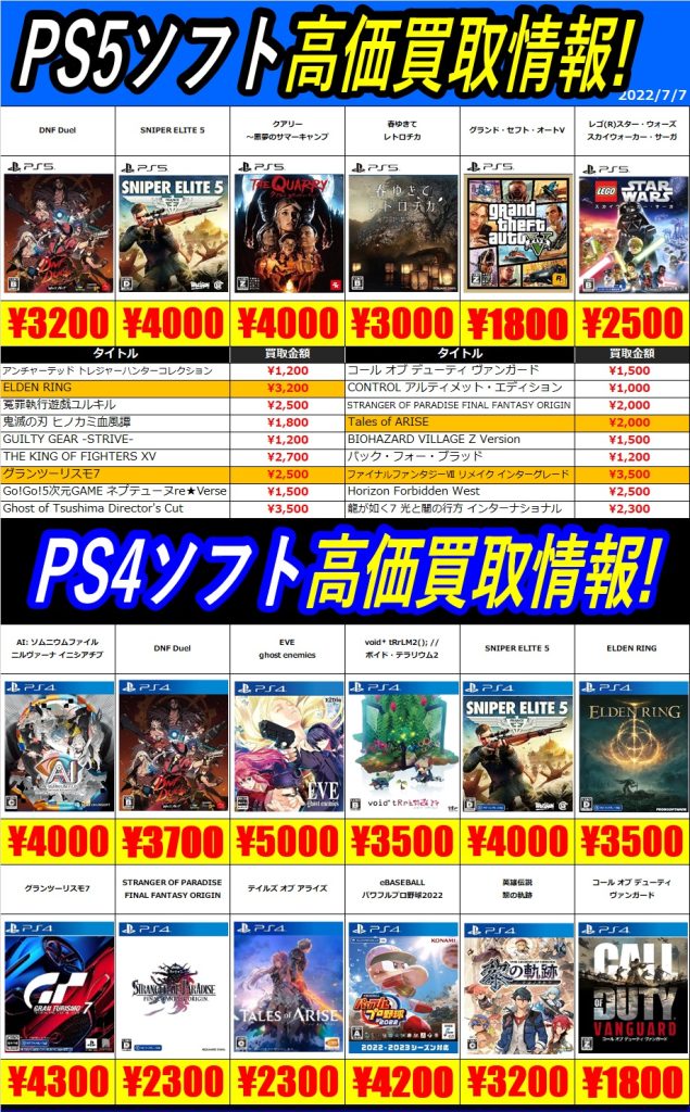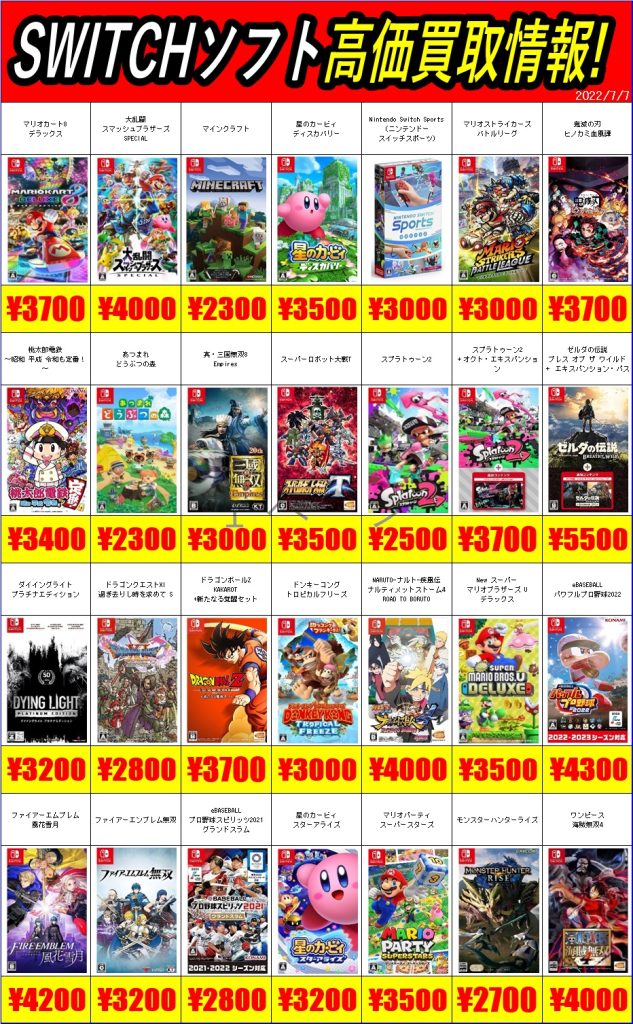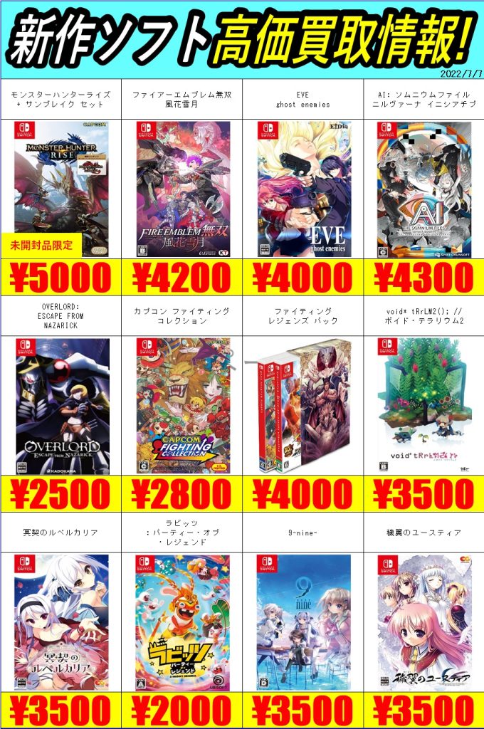 新作ゲーム買取情報