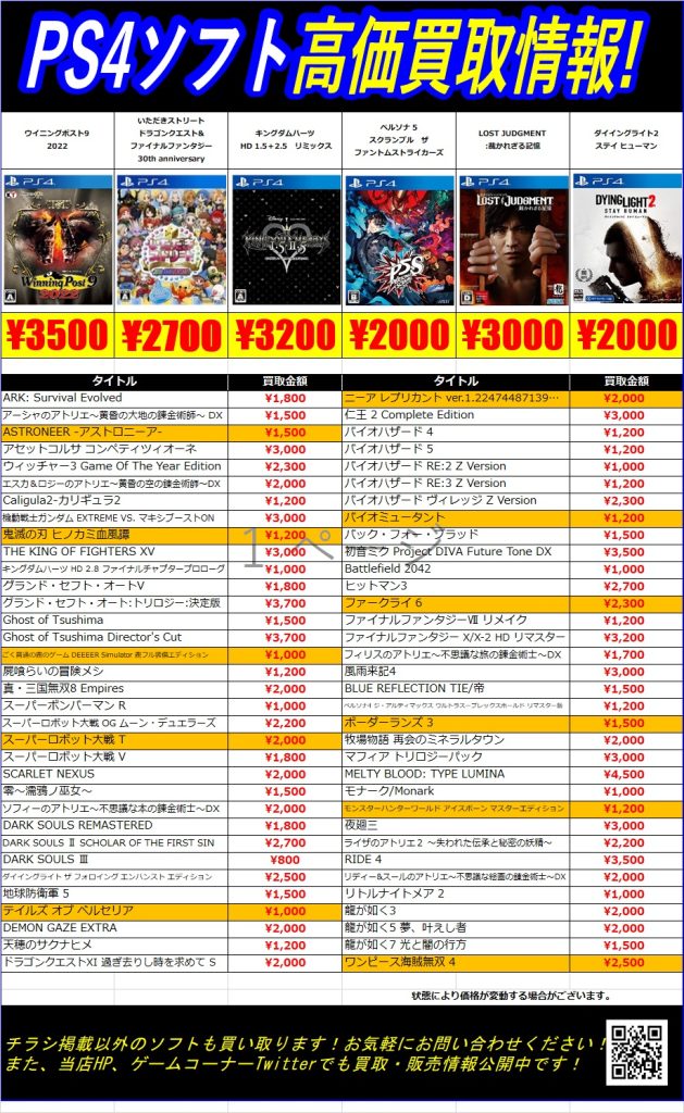 買取情報ゲーム11/24更新 スイッチ&PS4&PS5買取情報
