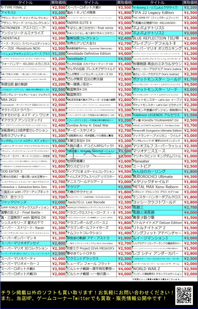 《ゲーム》10/29発信ゲーム買取情報