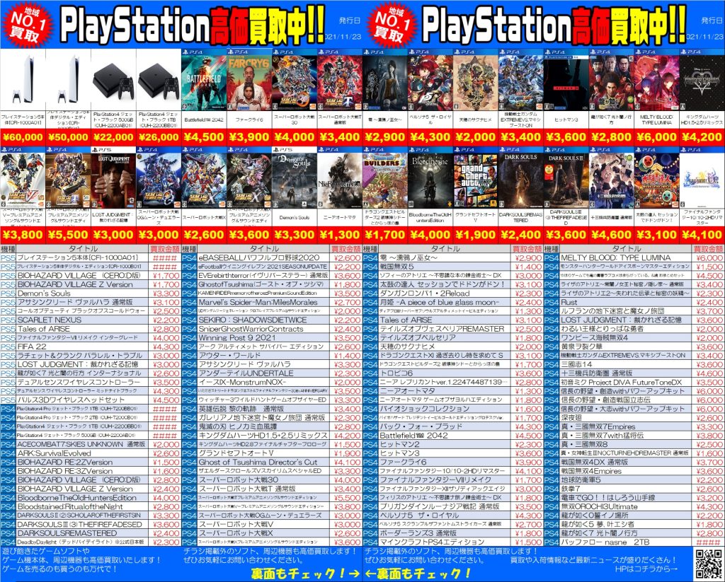 買取情報ゲーム11/24更新 スイッチ&PS4&PS5買取情報