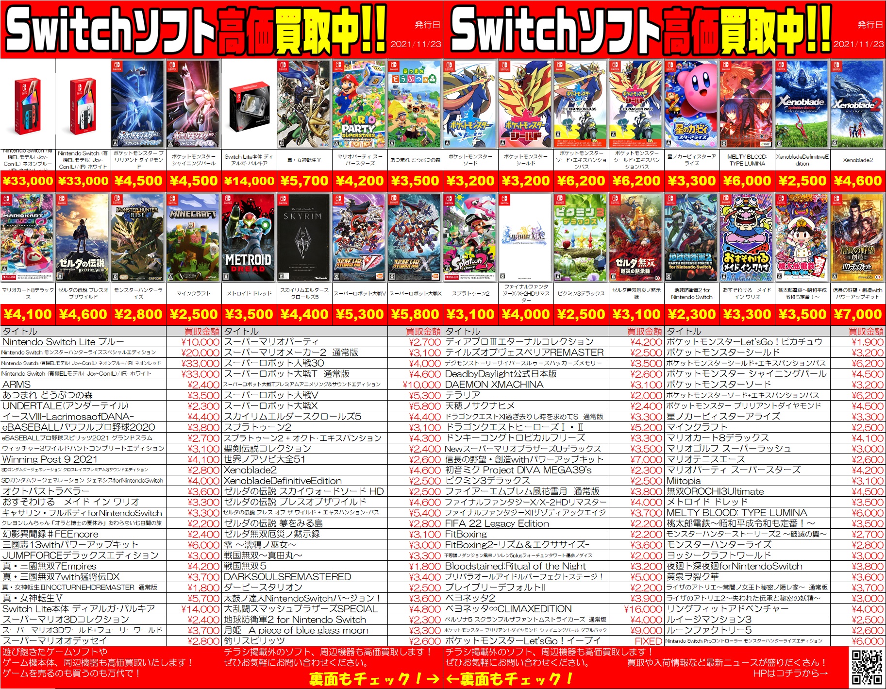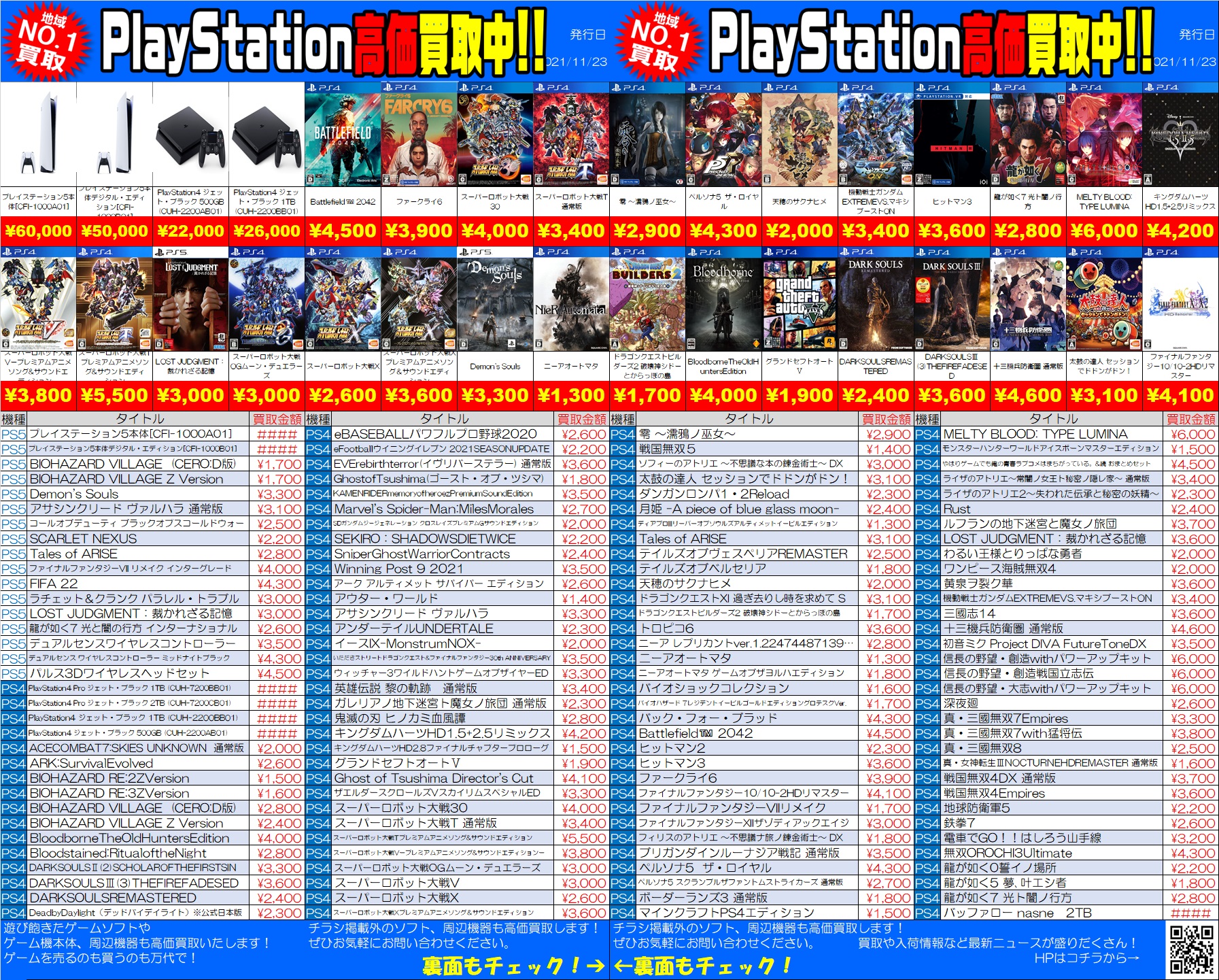 買取情報ゲーム11/24更新 スイッチ&PS4&PS5買取情報