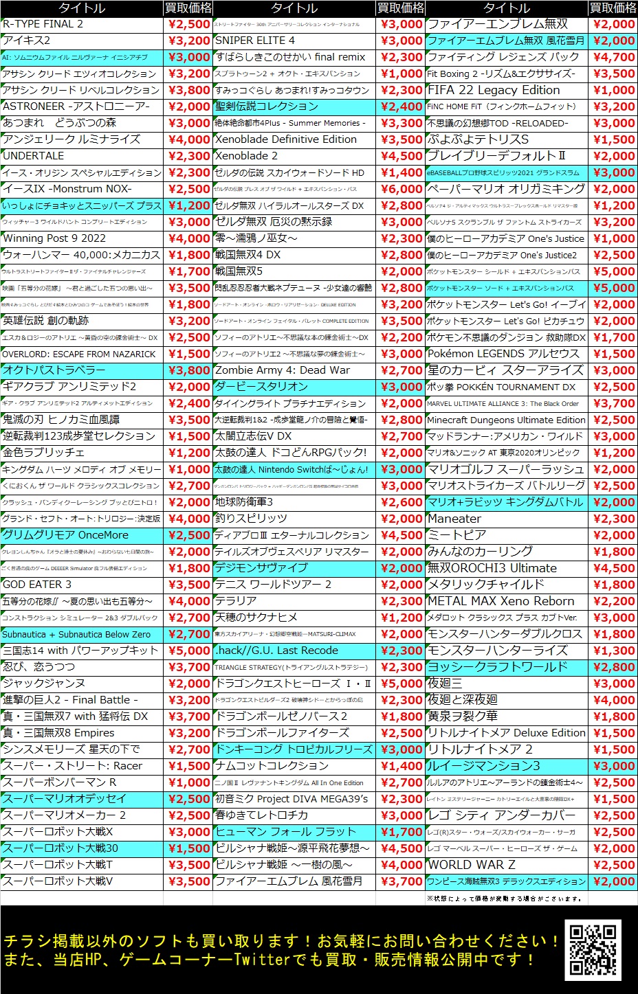ゲーム11/10更新 スイッチ&PS4&PS5買取情報