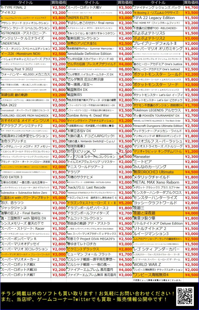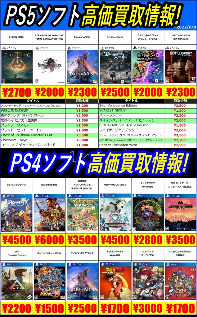 《ゲーム》8/9更新 ゲーム買取情報💪
