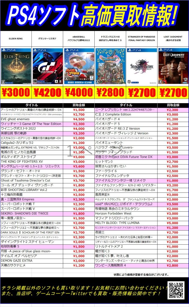 買取情報ゲーム11/24更新 スイッチ&PS4&PS5買取情報