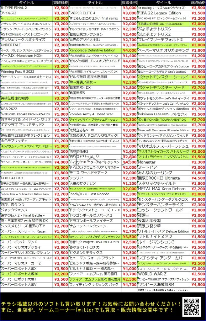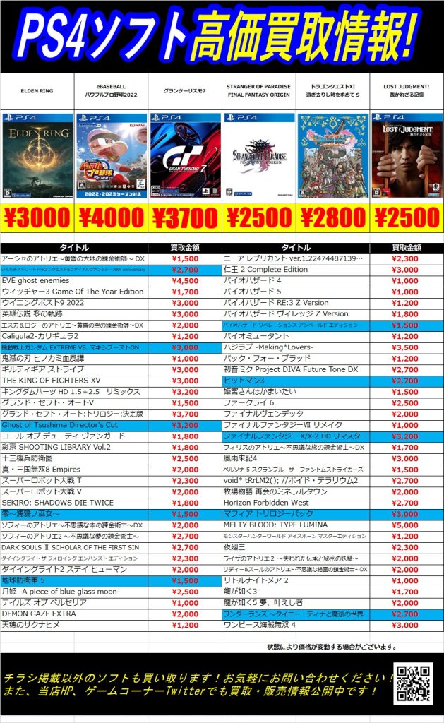 《ゲーム》9/1更新 ゲーム買取情報🎇