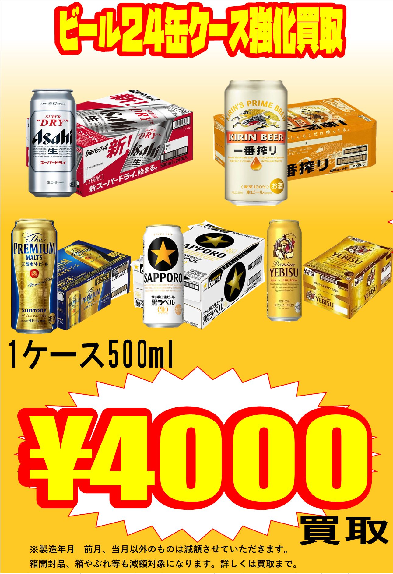 【お酒】生ビール強化買取!!500mlケース4000円買取!!