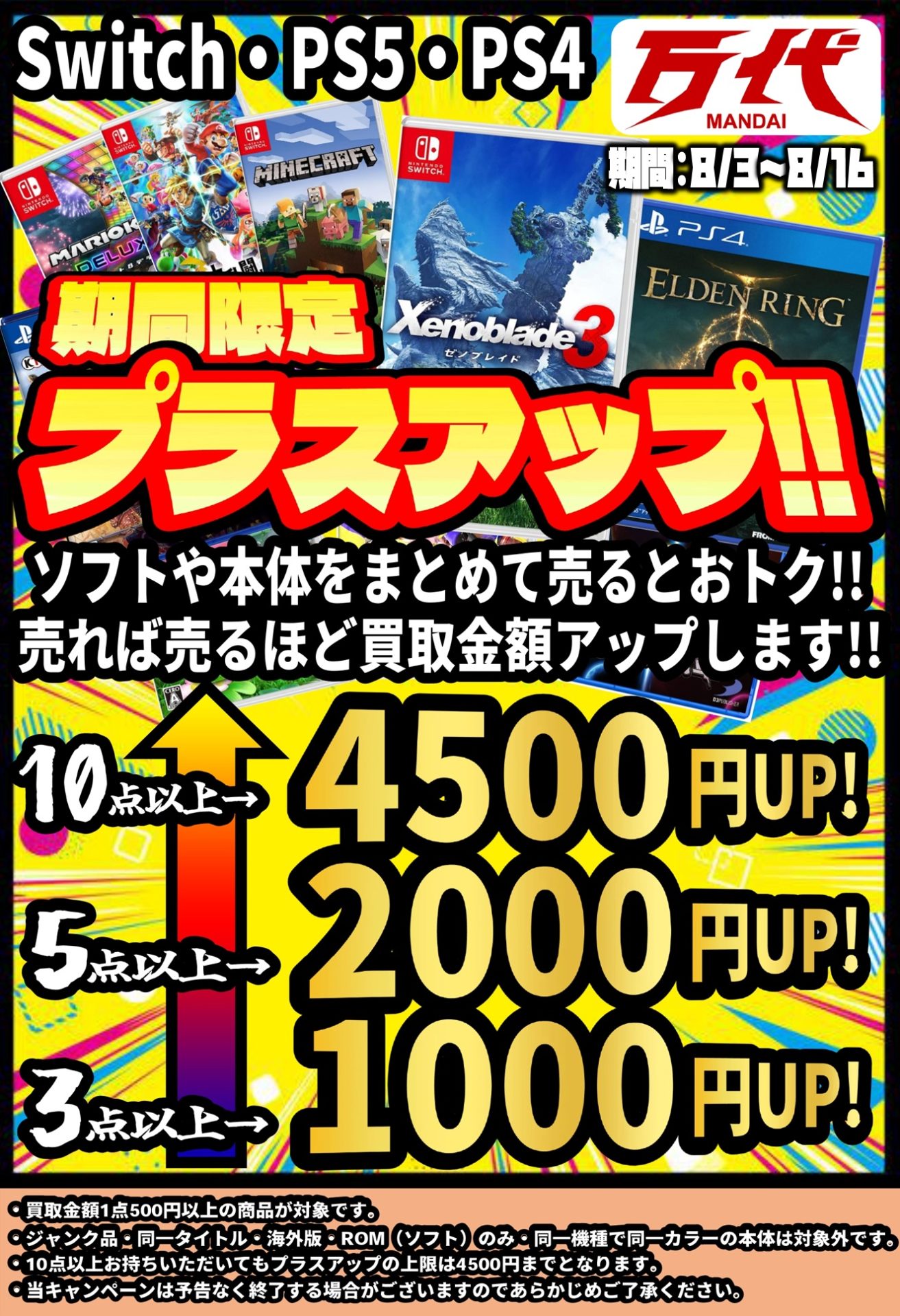 ゲーム【ゲーム】買取プラスアップイベントやりますっ!
