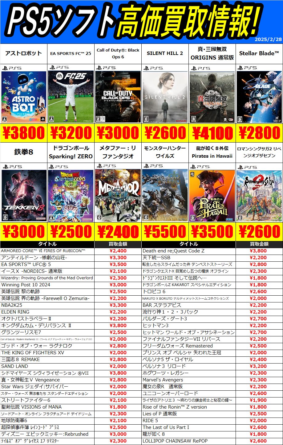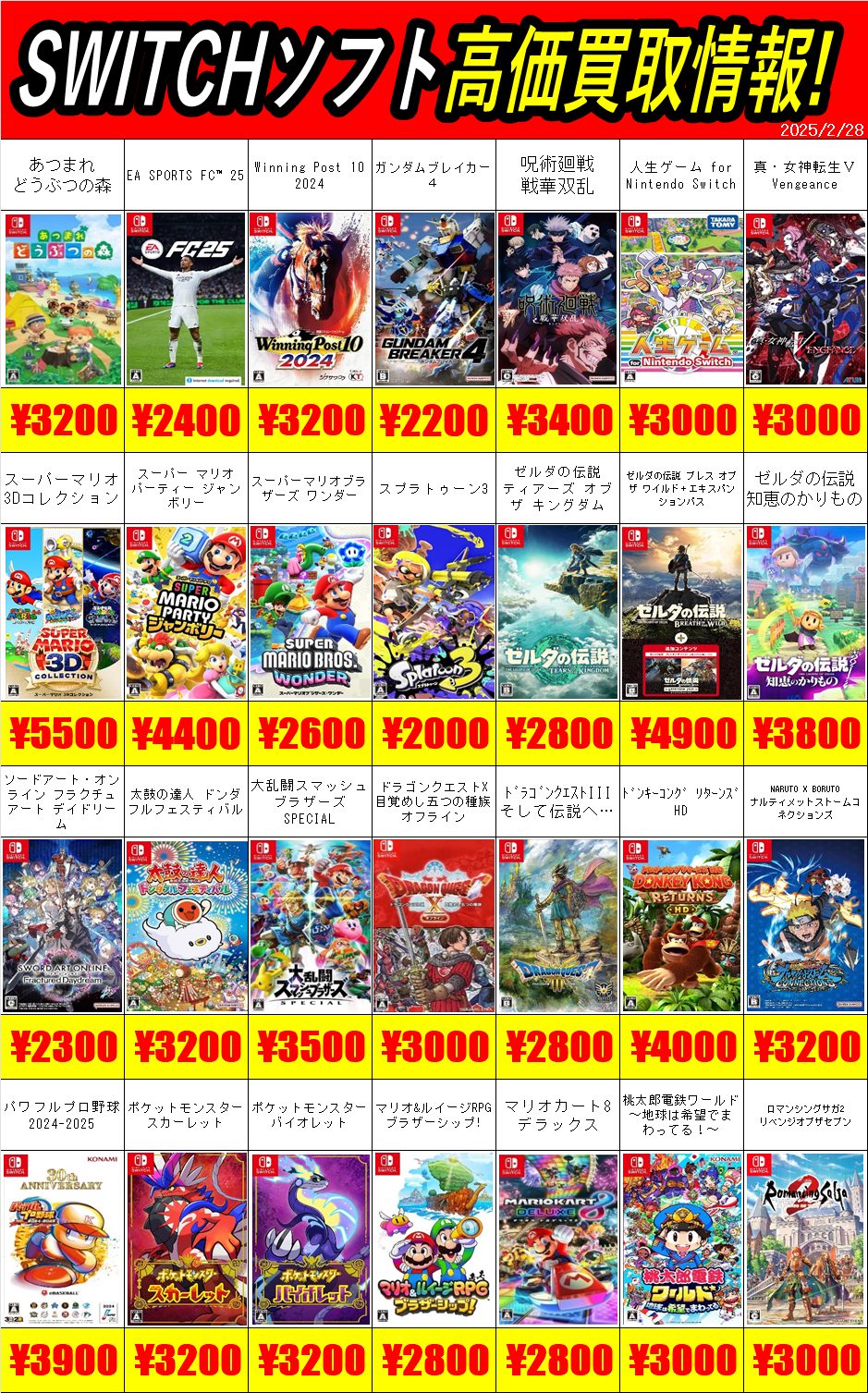 【仙台泉店ゲーム】2/28更新!!ゲーム買取情報!!