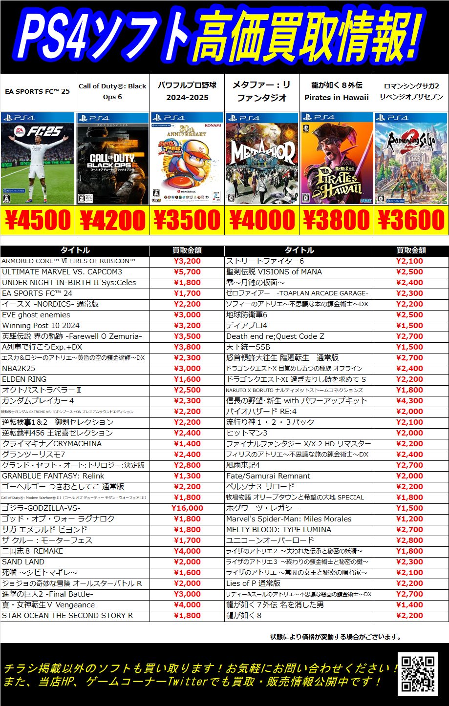 ゲームソフト高価買取情報!!