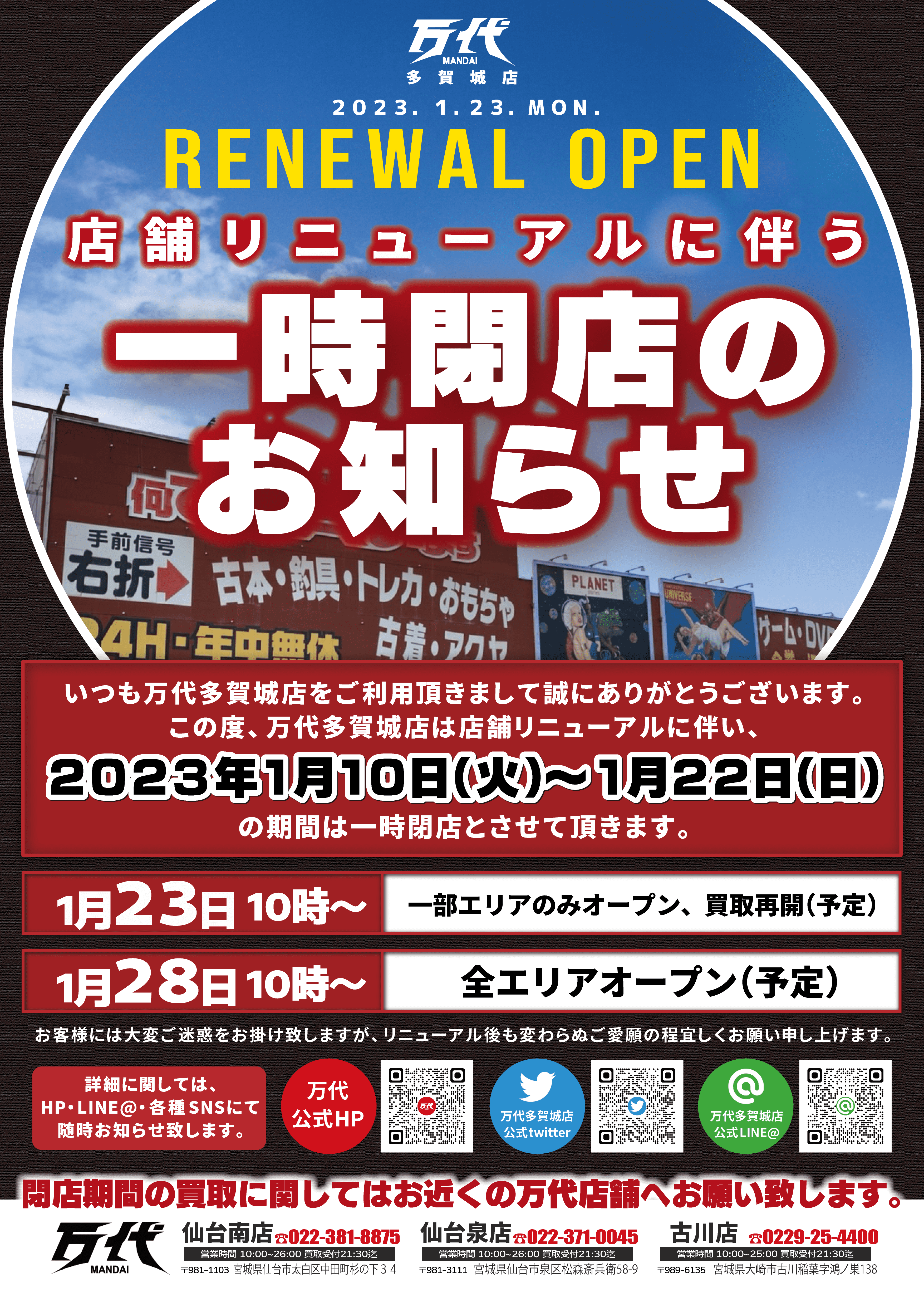 万代多賀城店リニューアルに伴う一時閉店のお知らせ