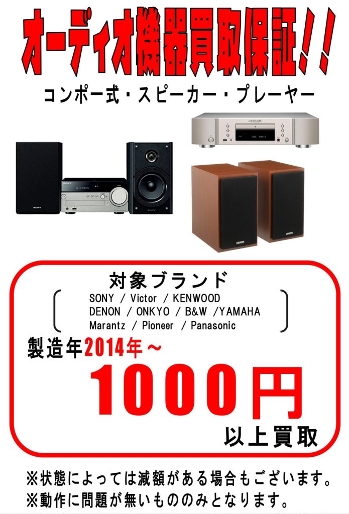オーディオ機器・ブルーレイレコーダー・扇風機・液晶テレビの買取保証を始めました!