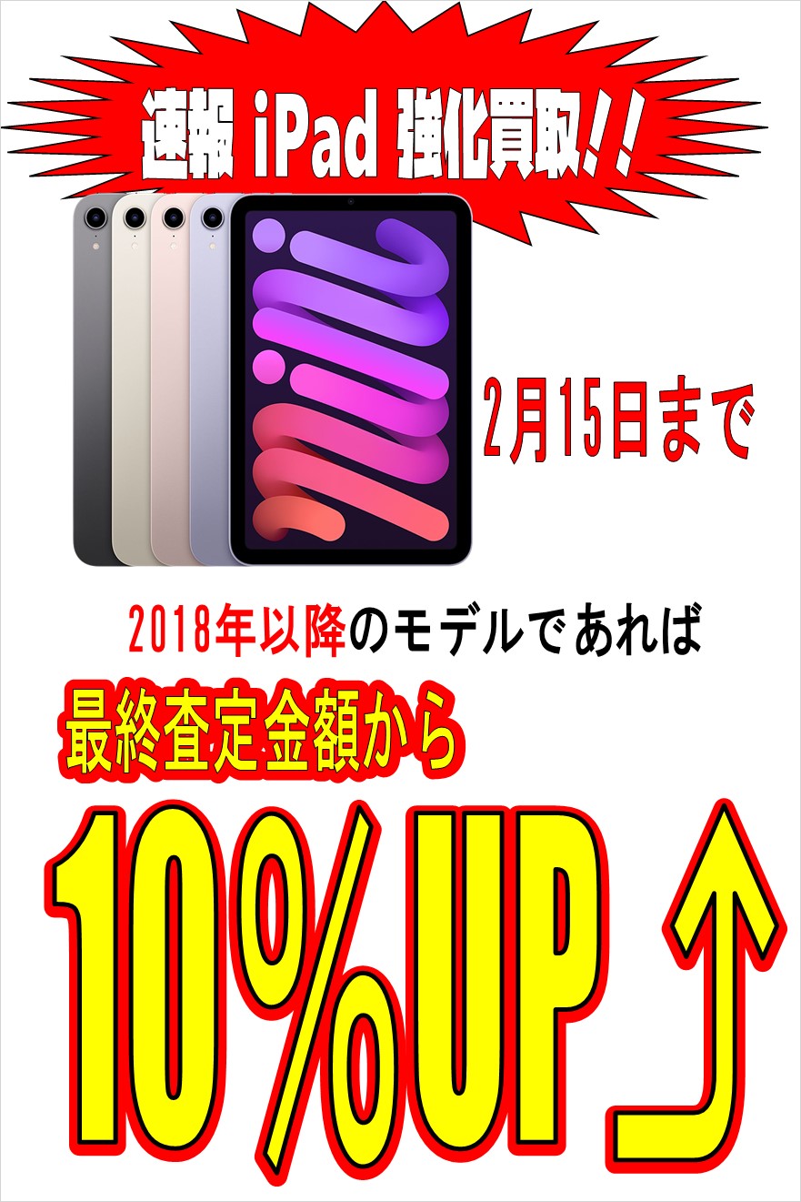 なんと万代仙台南店では1月25日から2月15日までiPad強化買取を開催!!
