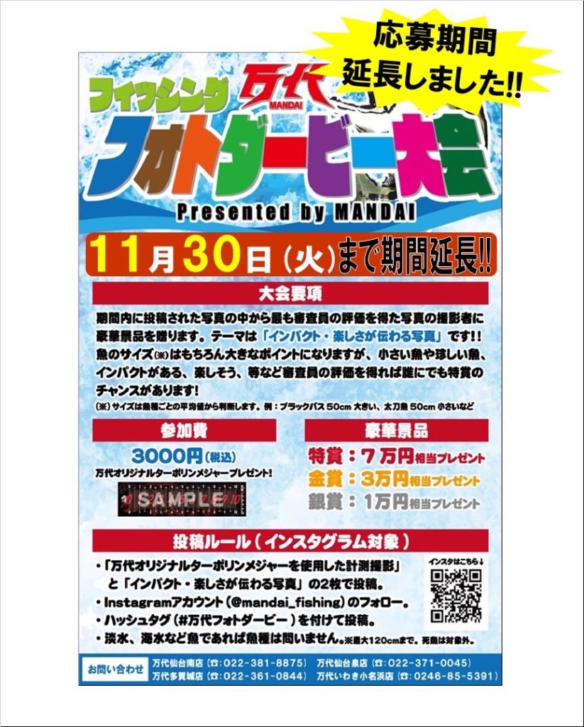 【釣具】万代フォトダービー開催期間延長!11月30日まで!!