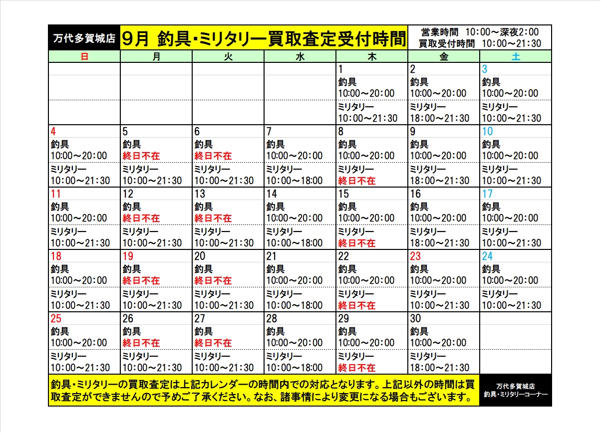 【釣具・ミリタリー】9月 釣具・ミリタリー買取査定について。