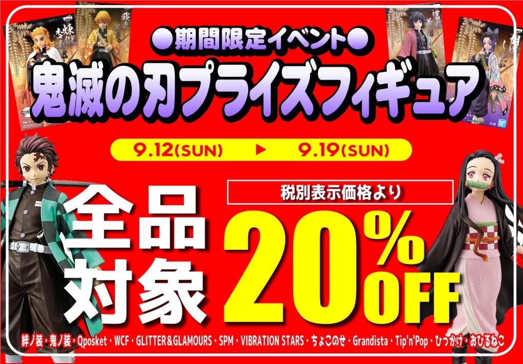②鬼滅の刃のプライズ商品、ぬいぐるみ、一番くじ商品が全品20%OFF!