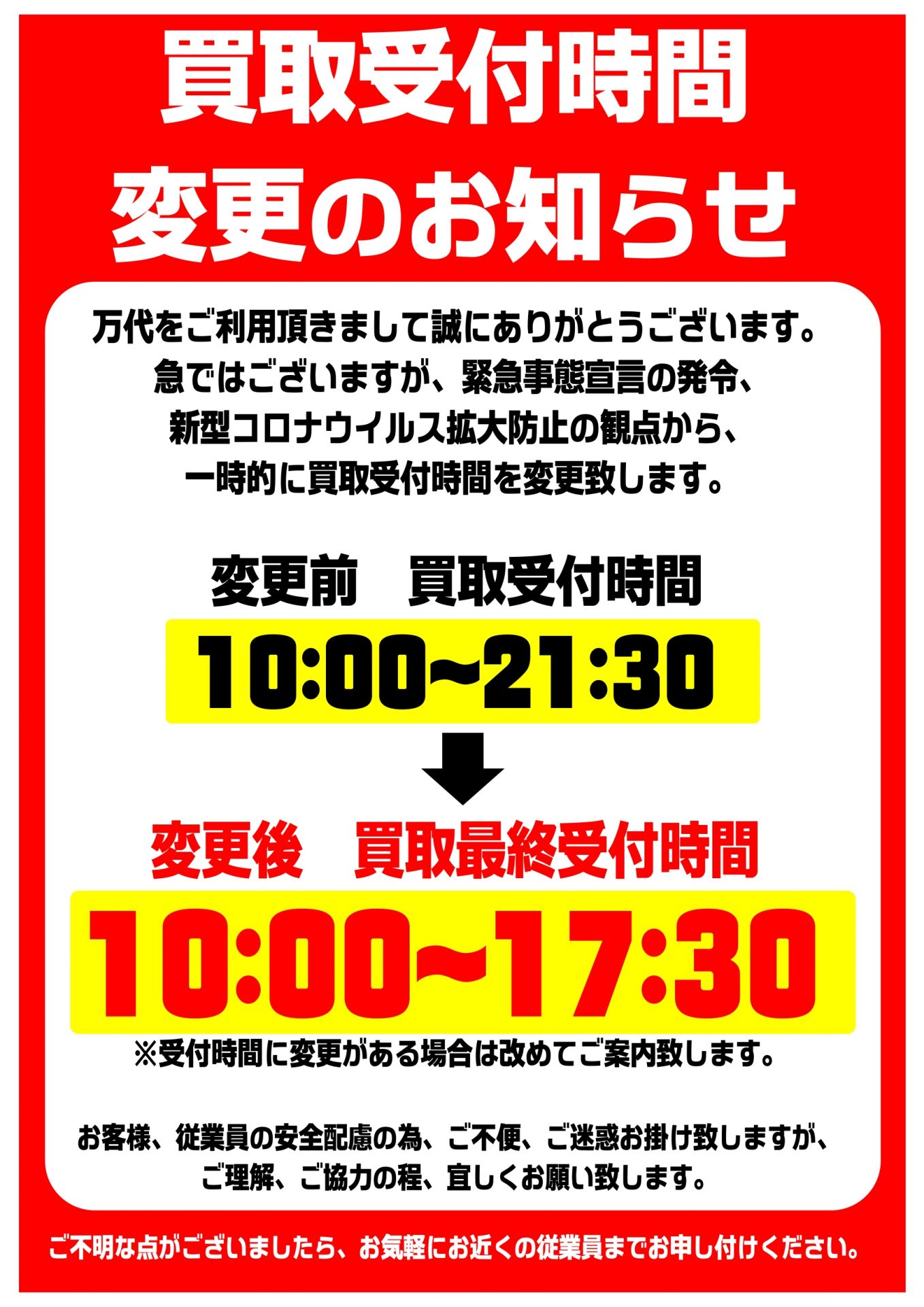 営業時間に変更はございません。 今後とも万代古川店をよろしくお願いいたします。