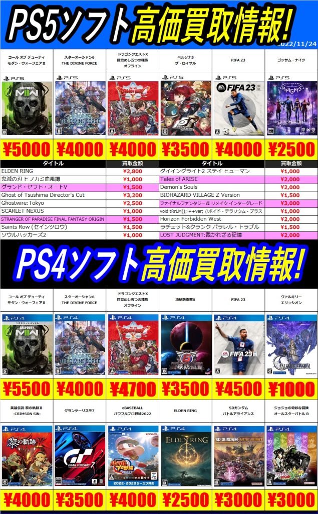 ゲーム11/10更新 スイッチ&PS4&PS5買取情報