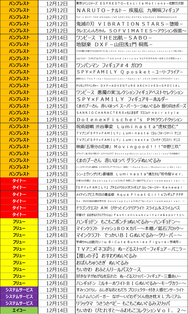 12月3週目の入荷情報