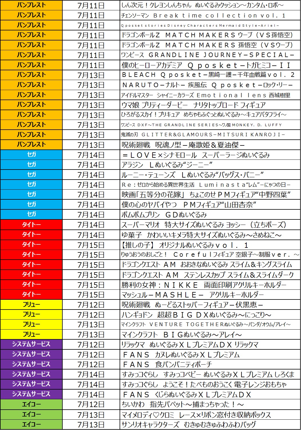 7月 3週目の入荷情報