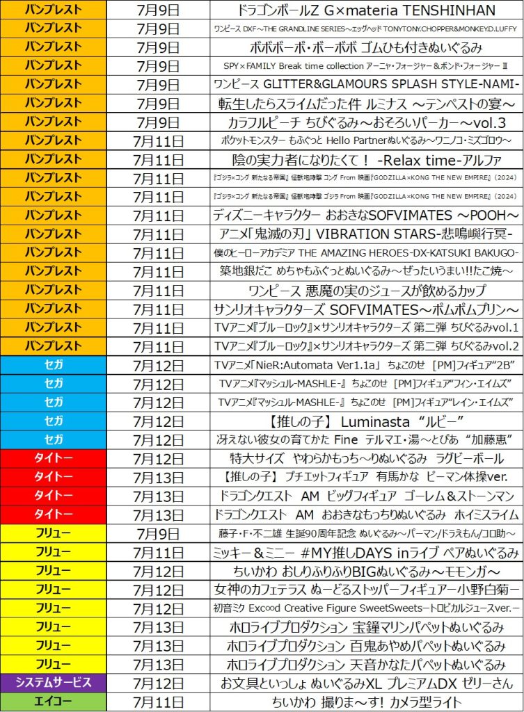 7月2週目の入荷情報